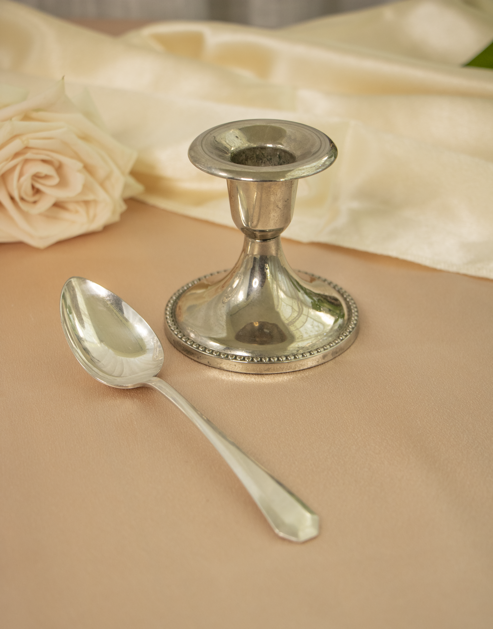 - A vintage silver candlestick holder, adding a gentle glow to teatime