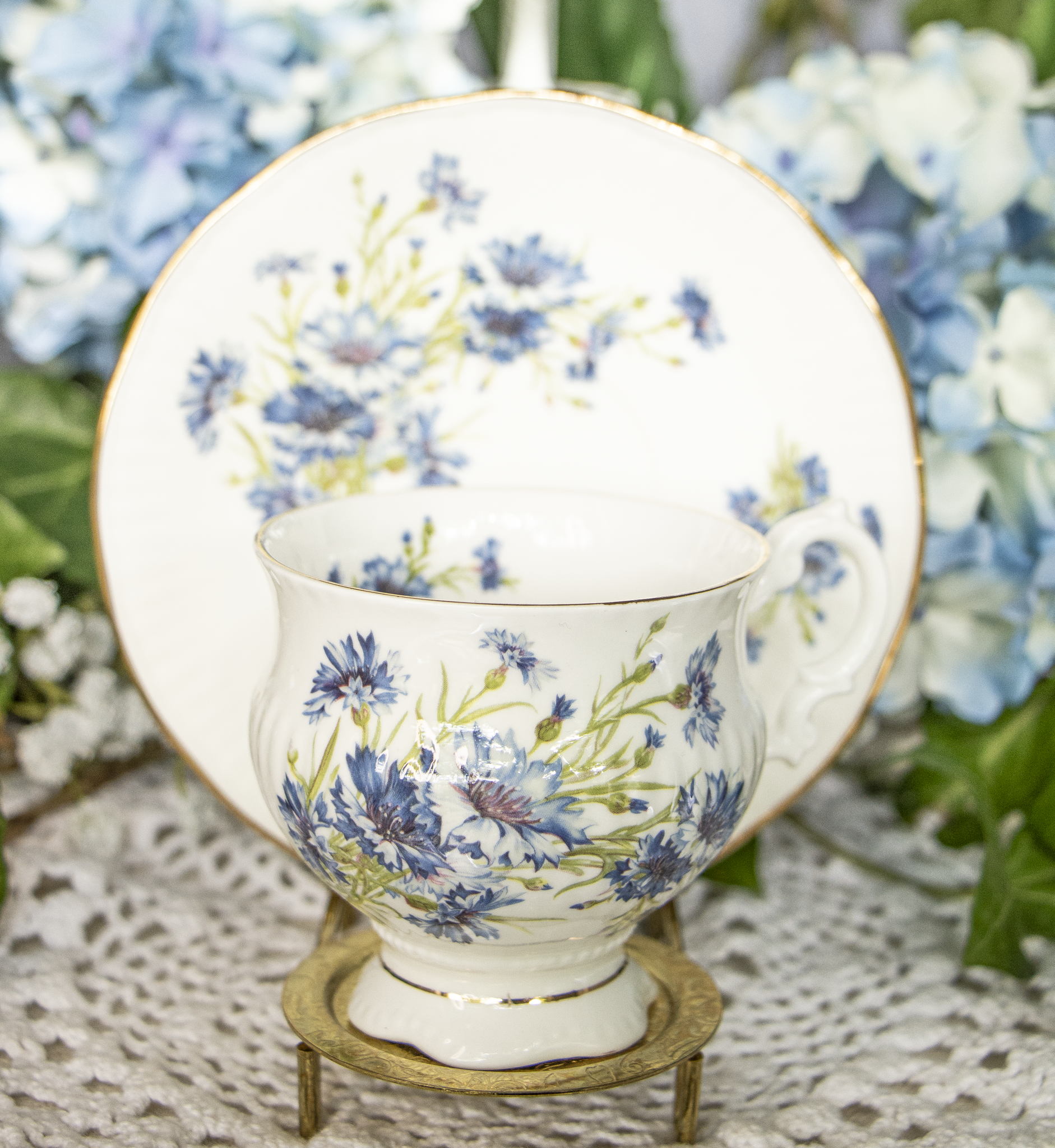 Elizabethan Staffordshire Teacup and Saucer – Blue Cornflower – Excellent Condition