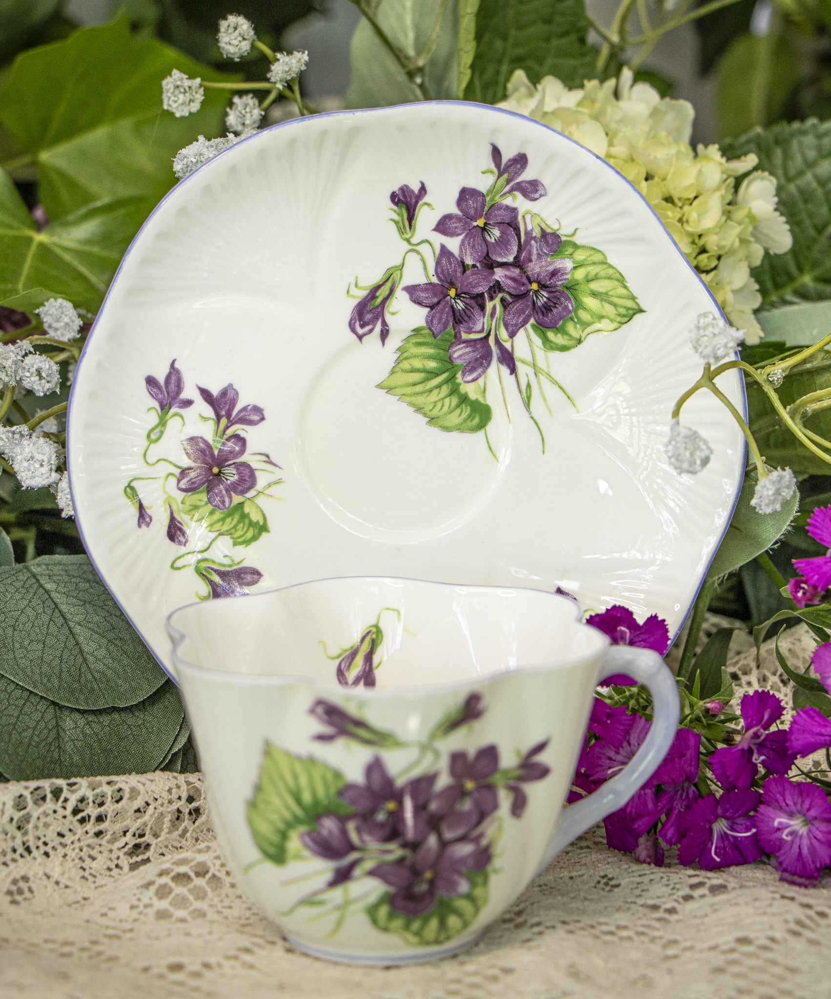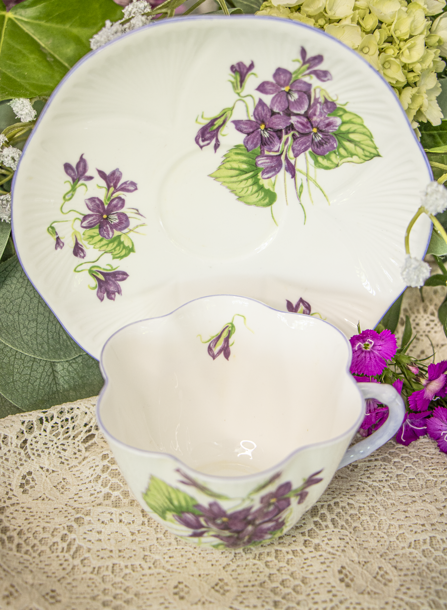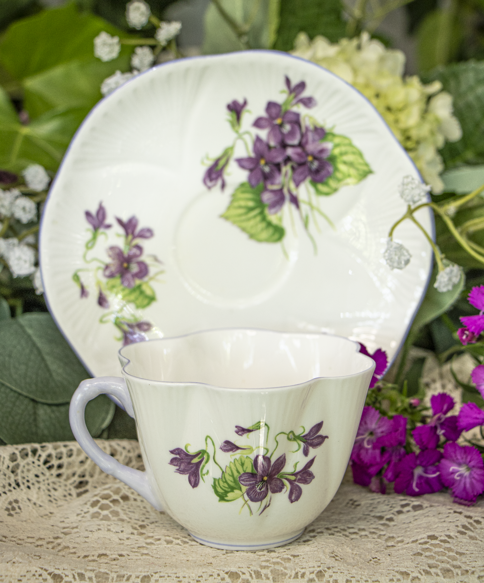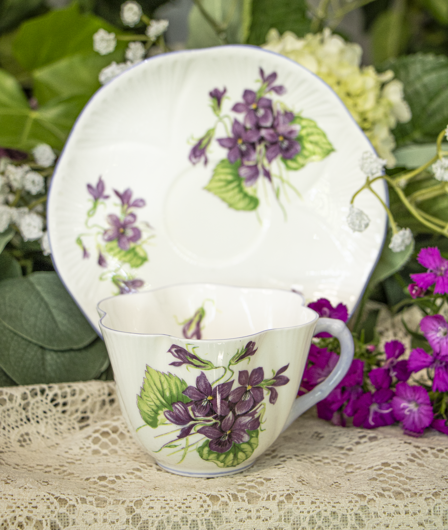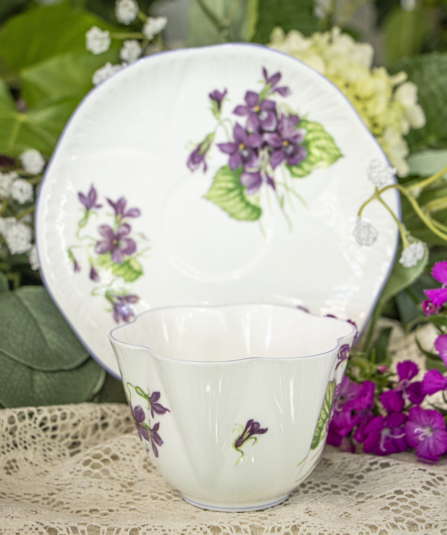 Shelley Fine Bone China "Violets" Teacup and Saucer - Dainty Shape - England