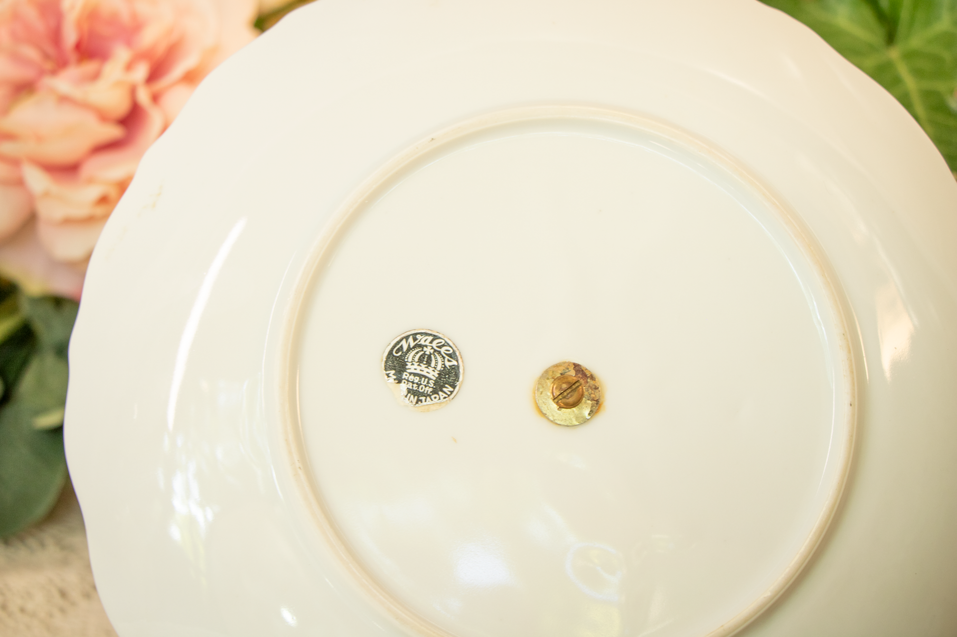 While the piece shows signs of age—there are a couple of small chips along the plate edges (see photos) and some wear to the metal handle—it retains its timeless beauty and character. Perfect for tea parties, dessert displays, or as a romantic decorative accent in vintage-inspired settings.